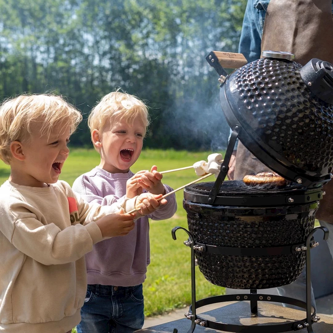 Dankzij de keramische pot aan de binnenkant van de Kamado kan de barbecue de hitte zeer goed reguleren en vasthouden. Hierdoor blijven je kolen goed branden en blijven ze op de juiste temperatuur. Hierdoor wordt minder houtskool verbruikt dan bij een traditionele houtskool barbecue. Daarnaast is een Kamado barbecue volledig afsluitbaar. Zo blijft niet alleen de hitte, maar ook de rook en lekkere barbecue smaak behouden. Plan hieronder jouw afspraak in en kom langs voor een voorproefje!
