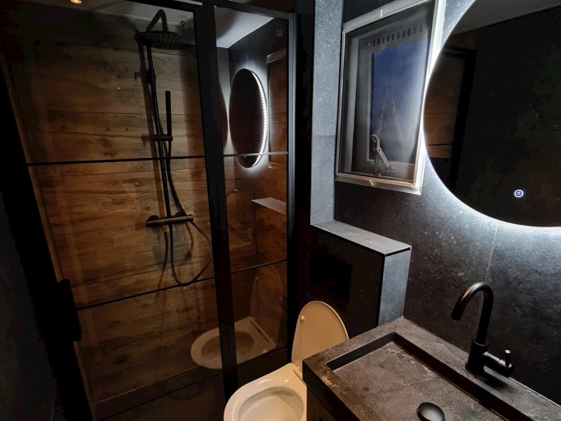 Er wordt steeds meer waarde gehecht aan comfort, sfeer en luxe elementen in een badkamer. Om een praktische, sfeervolle complete badkamer in een kleine ruimte creëren is een extra grote uitdaging. Wij vinden dat de inrichting van deze badkamer in een chalet ontzettend goed is gelukt. Ondanks alle beperkingen is er een sfeervolle en luxe badkamer in samenwerking met Sani4All gecreëerd.