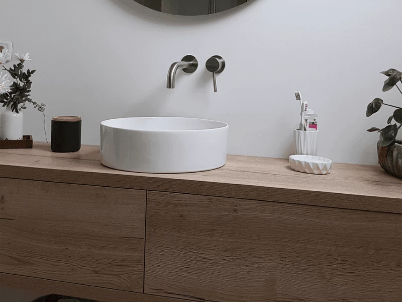 Door de strakke afwerking is deze kraan populairder dan ooit. Een kraan uit de muur ziet er stijlvol uit en zien we dan ook vaak terug bij moderne badkamers. Maar deze kranen passen ook zeker bij deze tijdloze badkamer. Naast de uitstraling heeft de inbouwkraan ook praktische voordelen. Doordat de kraan in de muur gemonteerd is, blijft er meer ruimte over op de wasbak. Dit zorgt ervoor dat de wasbak makkelijker schoon te houden is. Niet alleen de wastafelkraan kan ingebouwd worden, ook de badkraan en douchekraan kunnen in de muur worden weggewerkt. Door bijvoorbeeld de douchekraan weg te werken en te kiezen voor een hoofddouche met een plafond-of wandarm creëer je rust in de badkamer.