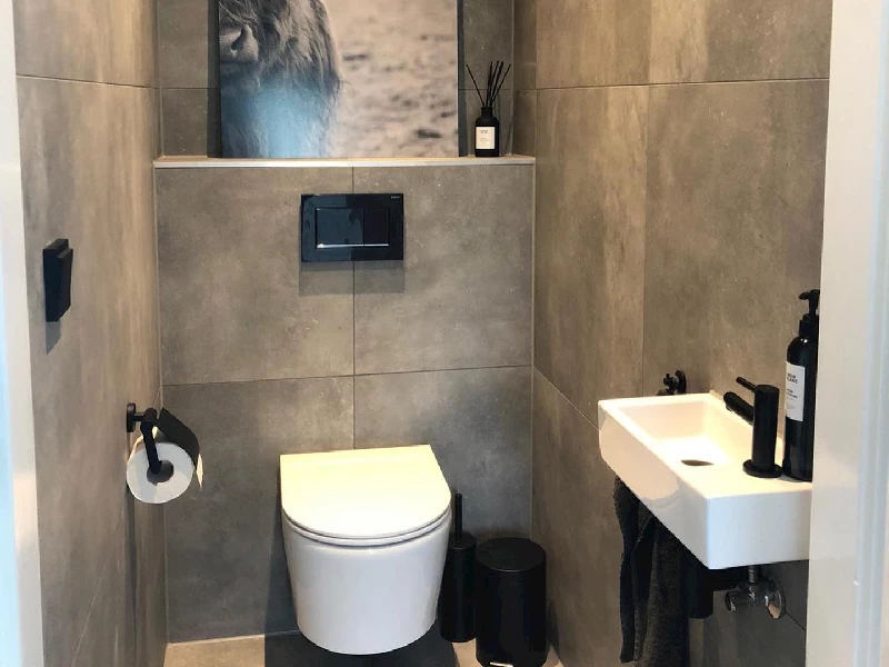 Naast een badkamer heeft deze familie ook gekozen voor een nieuwe toiletruimte. Deze heeft dezelfde luxe uitstraling en stijl als de badkamer.