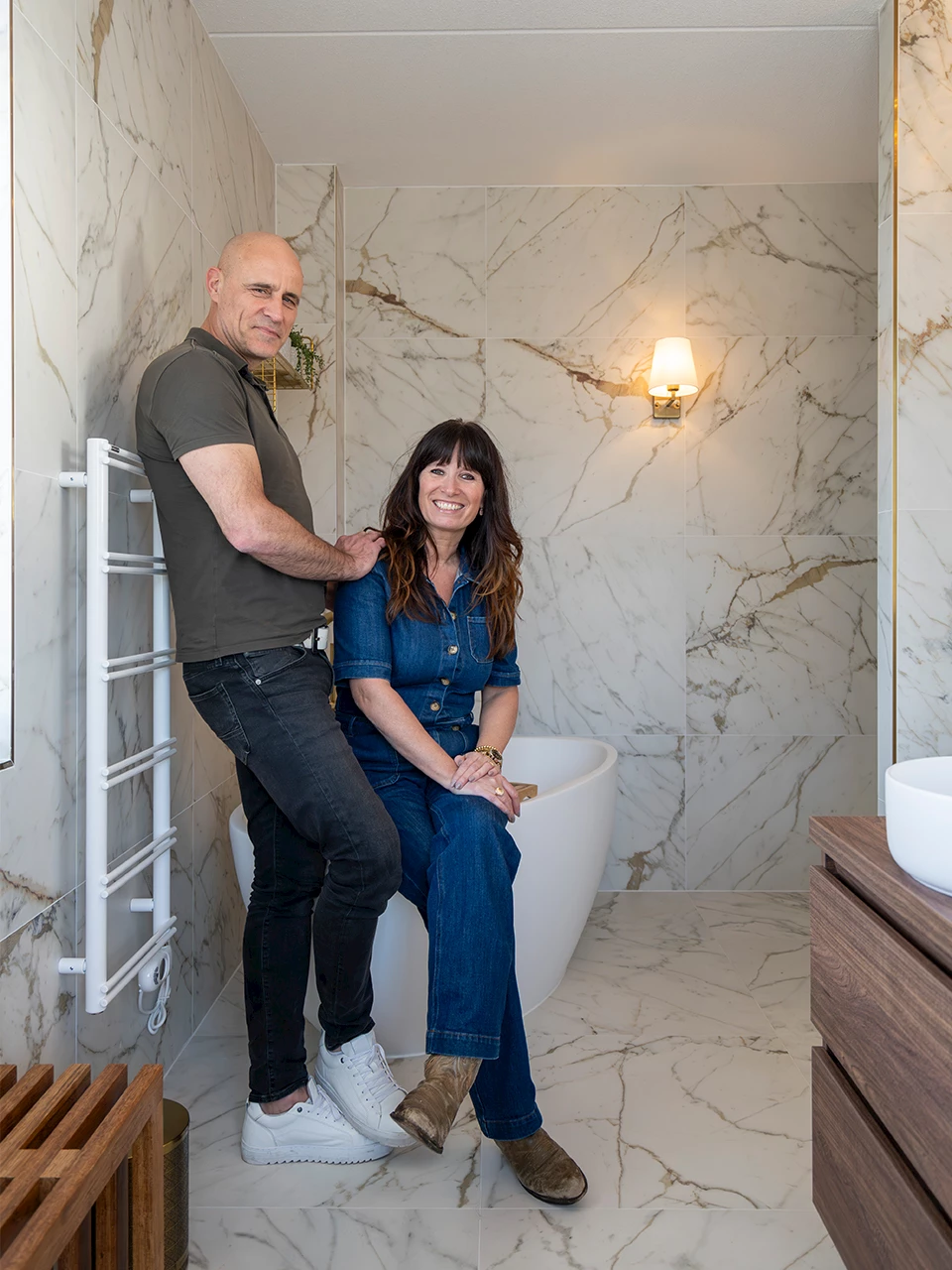 Wanneer je denkt aan een badkamer die volledig betegeld is met marmerlook tegels, zou je al snel een hele drukke badkamer verwachten. Maar door de juiste combinaties te maken, kun je juist een hele stijlvolle en unieke ruimte creëren. Zo heeft de familie Kwakman uit Lisse deze stijlvolle marmerlook badkamer uitgezocht bij Sani4All Mijdrecht, met een prachtige ruimte als resultaat!