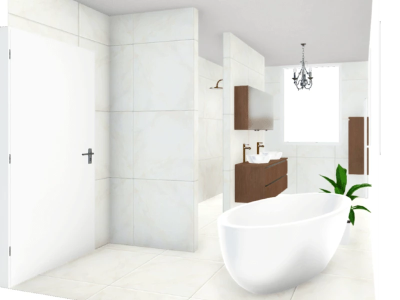 Al tijdens het eerste adviesgesprek is badkameradviseur Lisa aan de slag gegaan met een 3D-ontwerp voor de familie van Dongen. In het ontwerp is de ruimte precies nagetekend, zodat er een realistisch beeld ontstaat. Daarnaast zijn zelfs de uitgezochte kleuren en materialen in het ontwerp verwerkt!