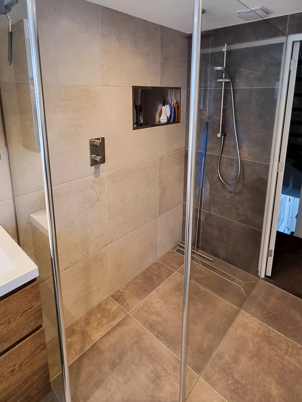 Deze moderne badkamer en toiletruimte zijn opgeleverd bij een familie uit Nijkerk door Sani4All. Beide ruimtes hebben nét een andere stijl, maar passen door de tegelkeuze wel goed bij elkaar.