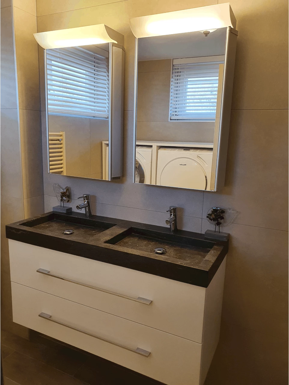 Landelijke badkamers zijn vaak een oase van rust en warmte én ook nog eens heel sfeervol. Deze badkamers bestaan uit natuurlijke en robuuste materialen. Hierbij kan je denken aan natuursteen en hout. Het kleurenpallet bestaat ook uit natuurlijke kleuren zoals romig wit, aardetinten, zachte pasteltinten en zandkleuren. Vaak associëren mensen landelijk met klassiek, maar een landelijke badkamer kan ook moderne kenmerken hebben. In deze badkamer is gekozen voor een combinatie van houtlook tegels en tegels in aardetinten. Daarnaast is er een natuurstenen wastafel toegevoegd, wat de landelijke stijl nog eens extra versterkt!