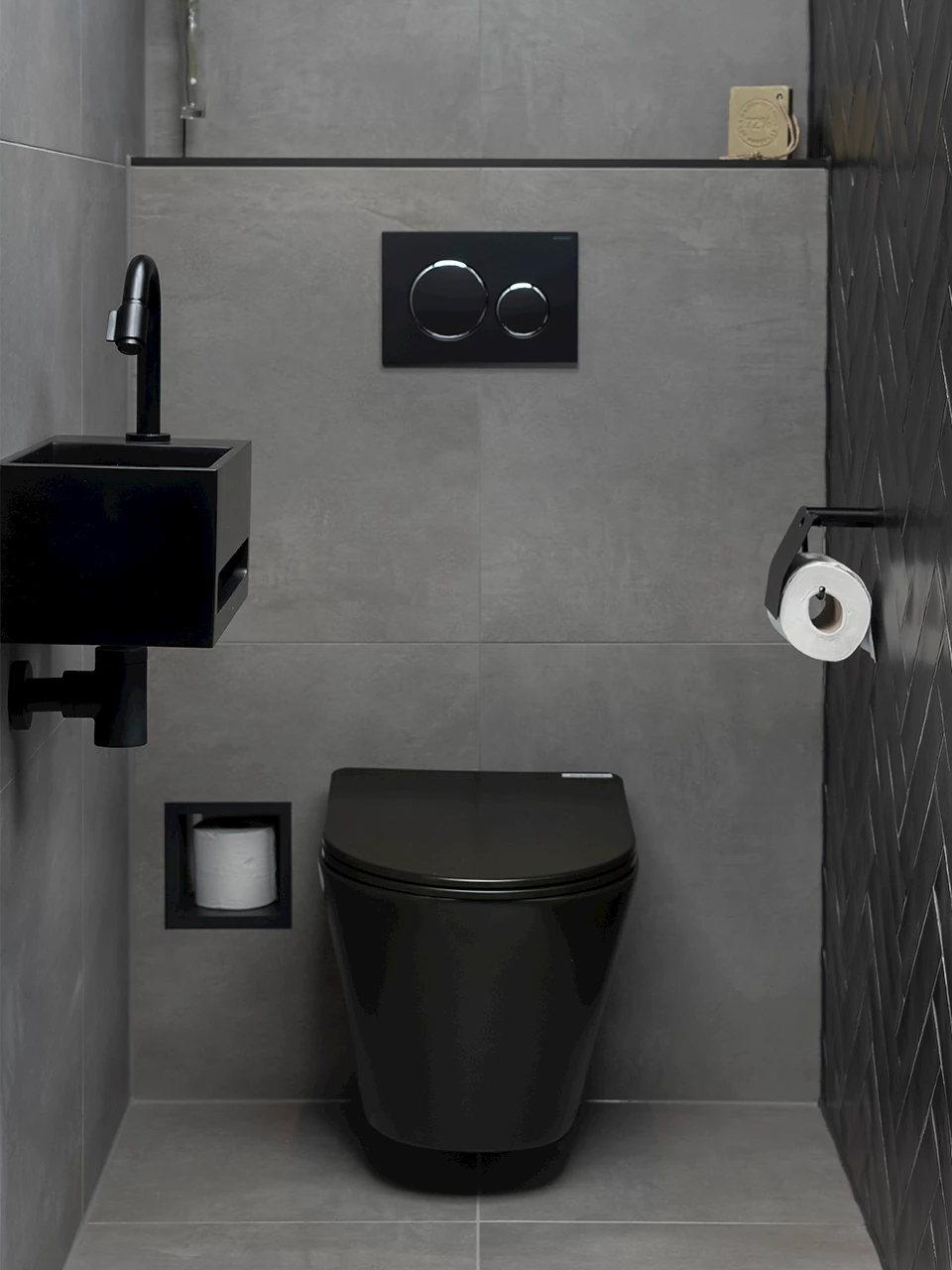 Nu is zwart misschien niet direct een hele gewaagde kleur, maar je kunt er wel een hele gewaagde toiletruimte mee samenstellen. Kies bijvoorbeeld voor een volledig zwart toiletruimte.